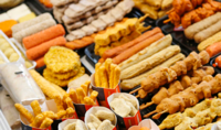 Kom uw frieten afhalen aan de zijkant van het frituur.